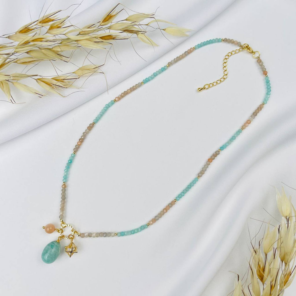 • Колье из Амазонита и Лунного камня 42 см +