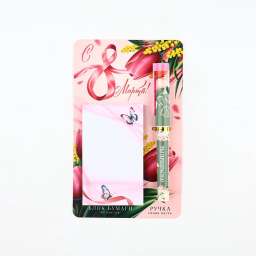 • Подарочный набор «С 8 марта!», ручка шариковая и блок бумаги 30 л