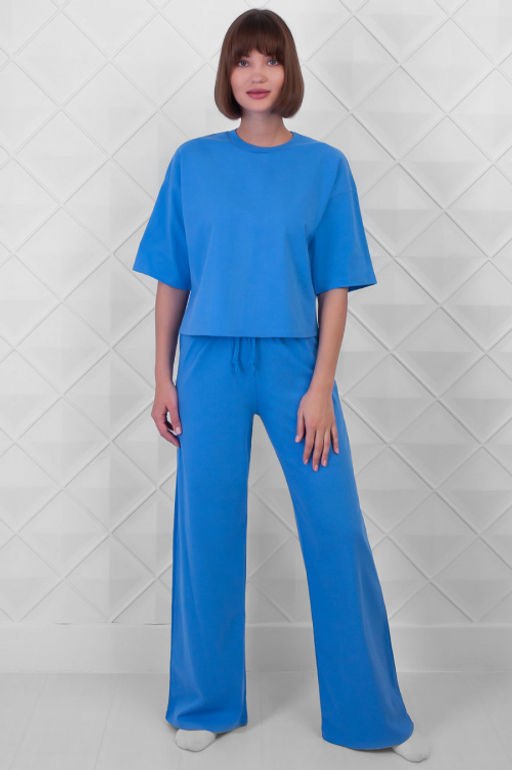 Артикул: Арт. 10804/1 Домашний костюм с брюками 44-52 (5 шт) Цвет:верх-небесный, низ-небесный