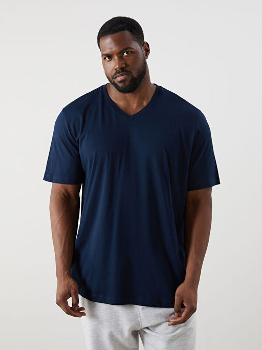 B?y?k Beden V Yaka Penye Erkek Ti??rt