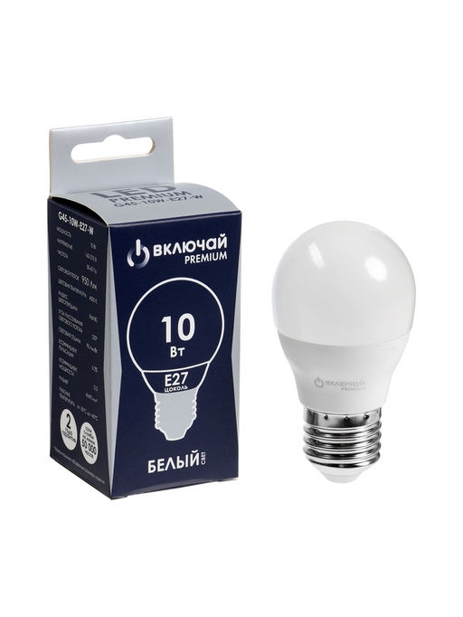 Цена за 2 шт. Лампа светодиодная Включай, G45, 10 Вт, E27, 950 Лм, 4000K, IP20, свечение нейтральное белое, матово