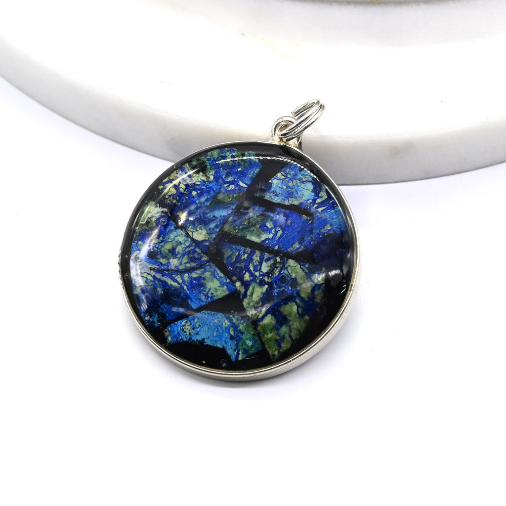 • Кулон "Мозаика" из азурмалахита 25мм-26мм Радуга камня