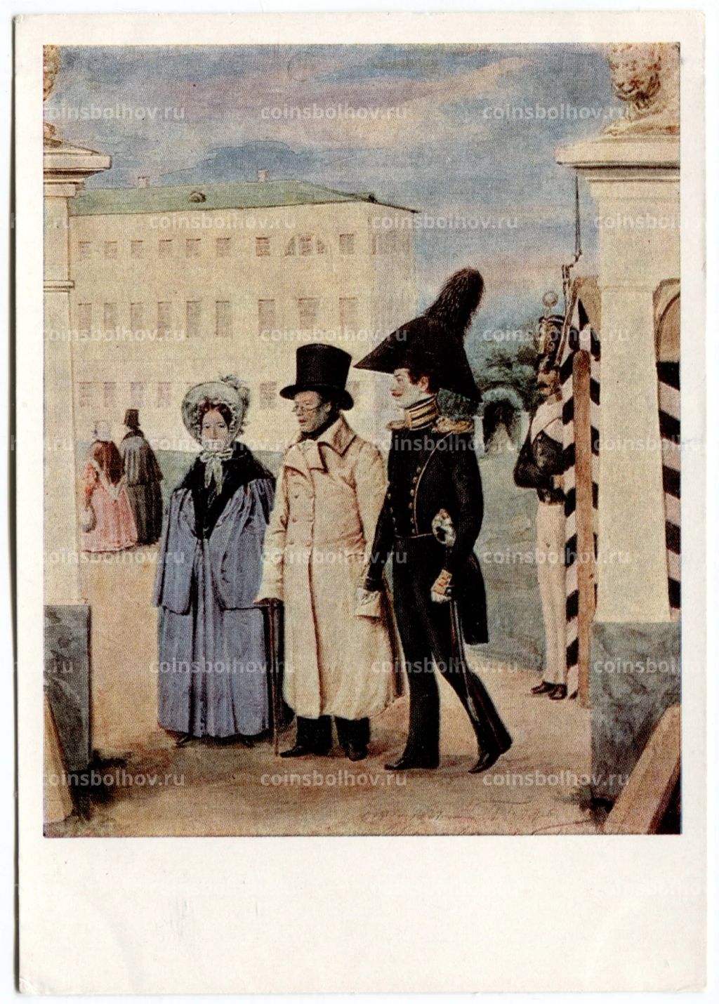 Открытка живопись П.А. Федотов Прогулка с родителями
