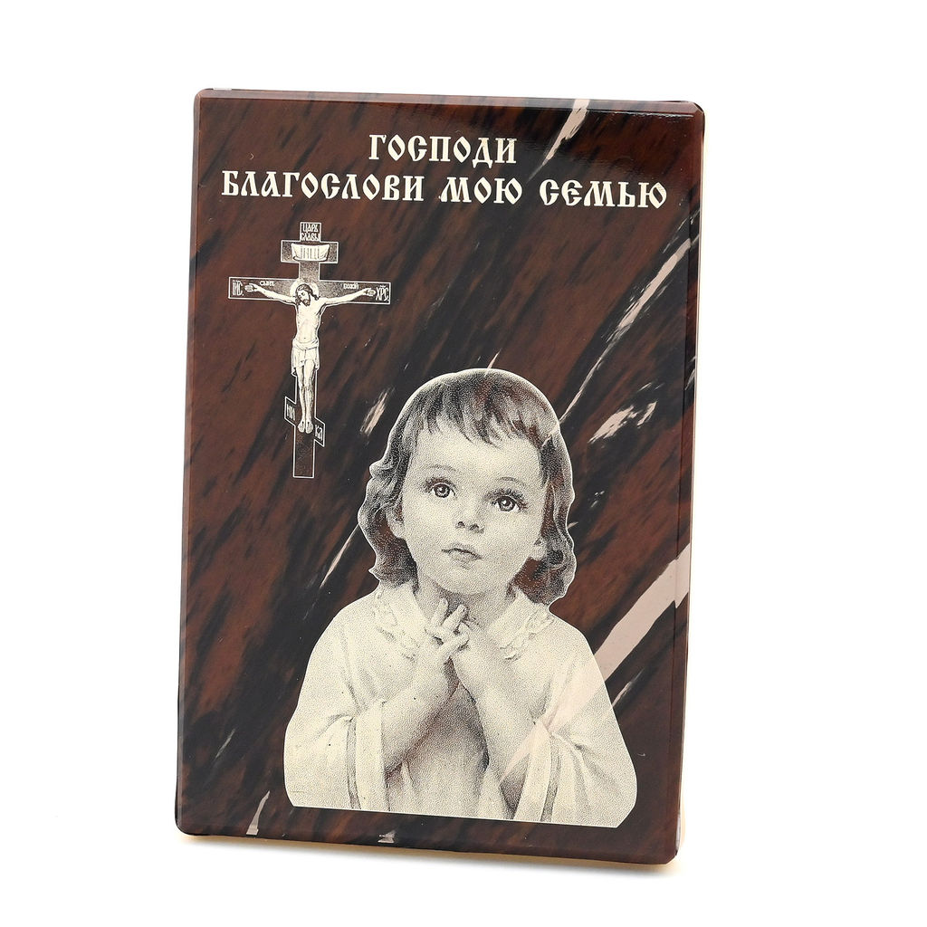 Оберег из обсидиана 70*100мм господи благослови мою семью Радуга камня