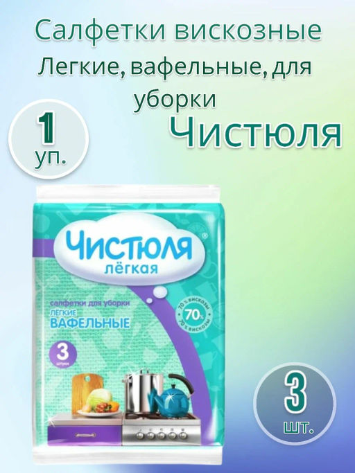 • ЧИСТЮЛЯ ЛЕГКАЯ салфетки вискозные вафельные (3шт) 30х38 см