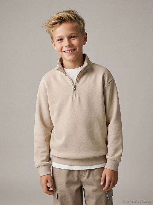 • Dik Yaka Yar?m Fermuarl? Erkek ?ocuk Sweatshirt