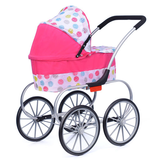 • Коляска-люлька для кукол, металлическая, цвет розовые круги