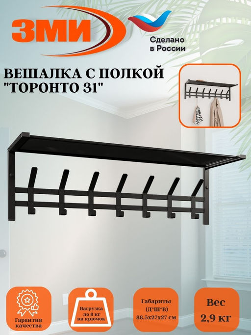 • Вешалка с полкой "Торонто 31" (Черный) ВСПТ31 Ч
