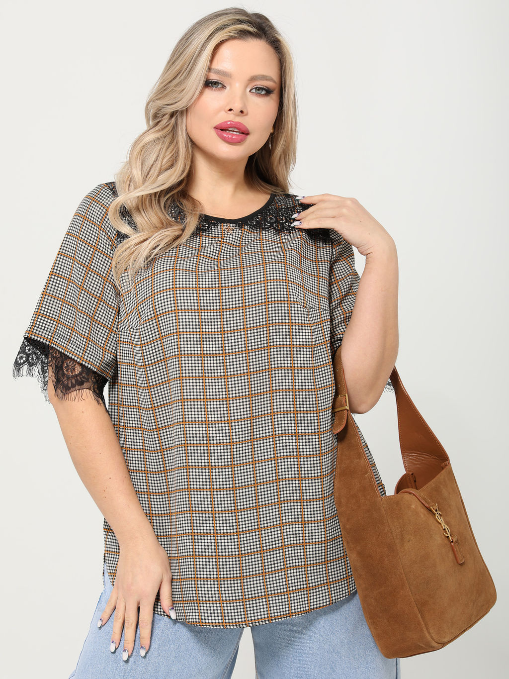 Блуза женская прямого силуэта с кружевом
