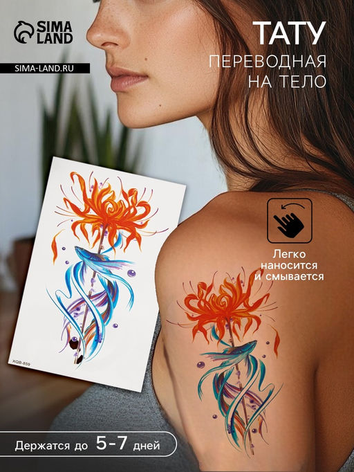 • Цена за 2 шт. Переводная тату на тело цветная Рыба синяя, 11.4?21 см