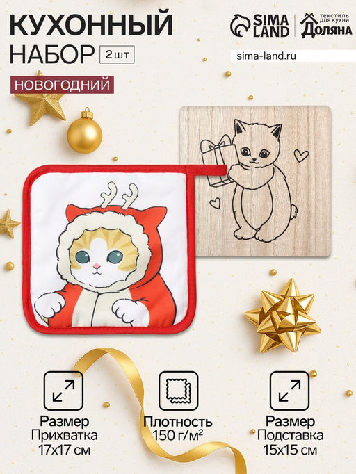 Кухонный набор «Котик»: подставка 15×15 см, прихватка 17×17 см