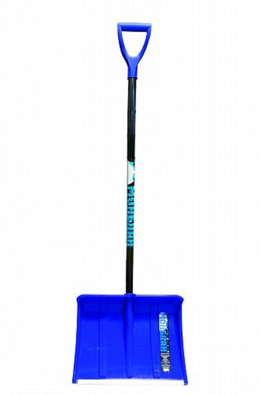 • Лопата снеговая пластиковая 500*375 мм, цветная, с алюм.планкой, съемн.алюм.черенком и V-ручкой "Монблан"