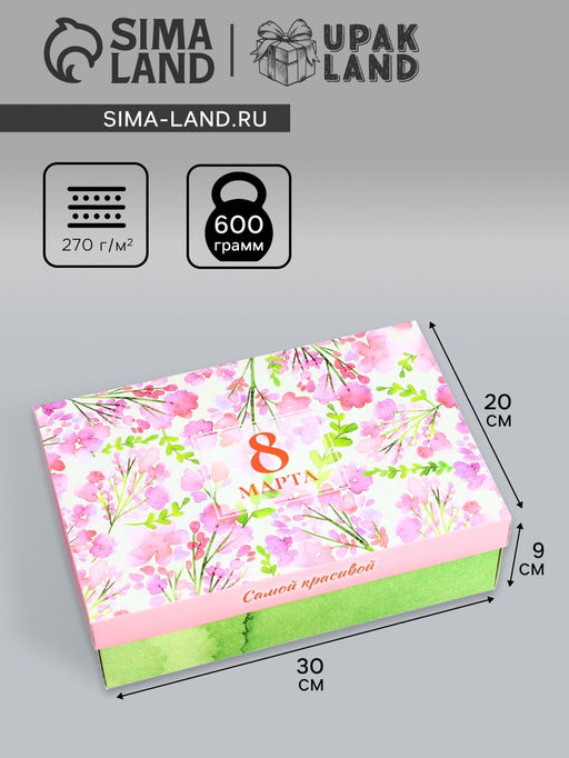 • Цена за 5 шт. Коробка подарочная складная 8 Марта, 30?20?9 см