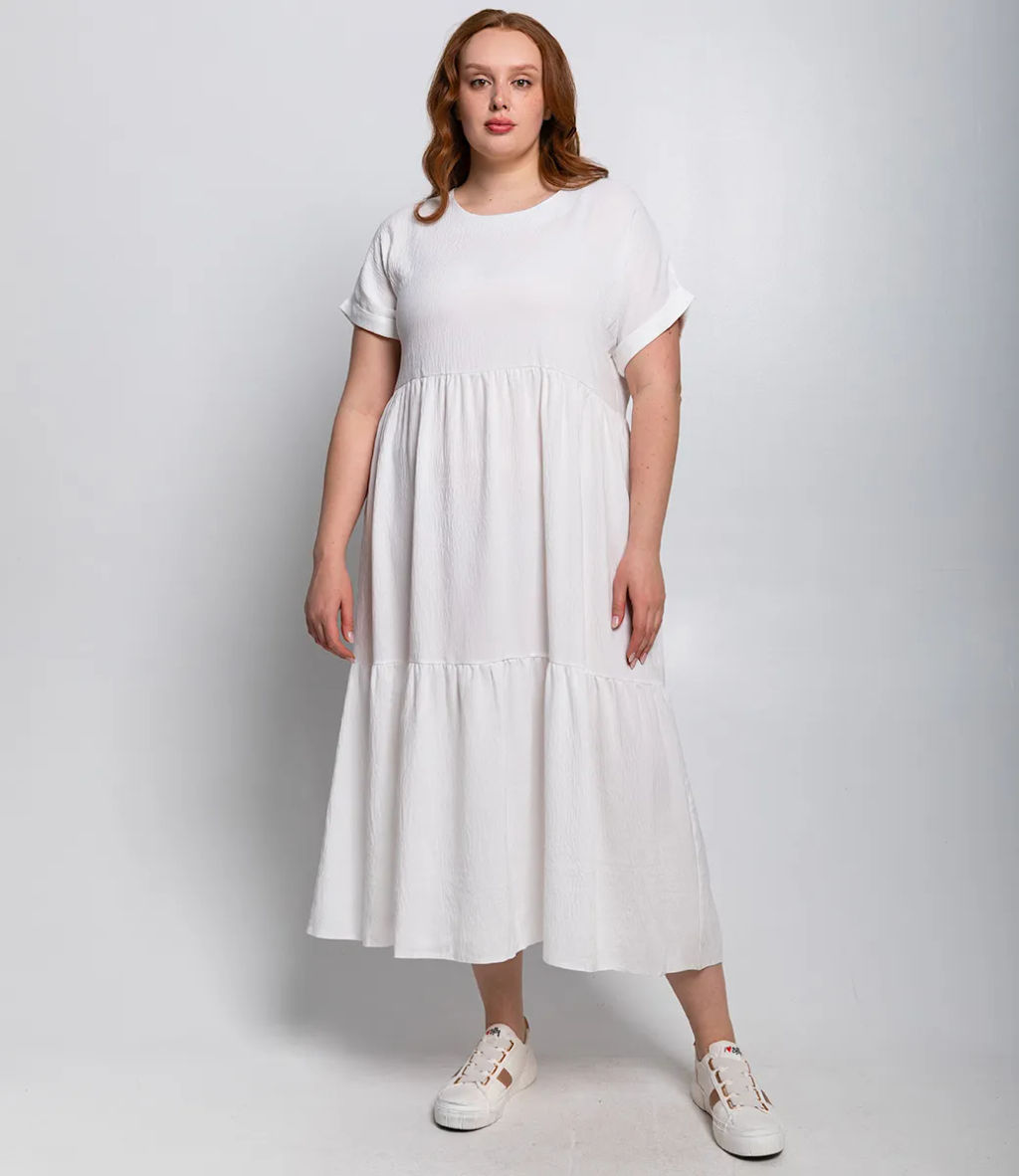 Легкое пллатье модной длины миди представленно в модных, ярких, летних оттенках. Данная модель одинакого хорошо подходит как для повседневного стиля, так и для создания вечернего романтического образа.­