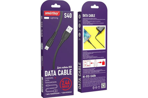 • Кабель Lightning - USB, 1 м, "S40" (iK-512-S40b) "Smartbuy", черный, 2.4А
