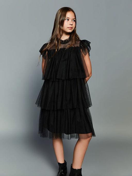 • Bisiklet Yaka KatKat K?z ?ocuk T?l Elbise