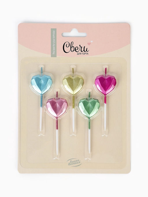 Декоративные свечи - неизменный атрибут для украшения праздничного стола или интерьера. Загадочное свечение мерцающих огоньков подарит атмосферу волшебства, когда все желания сбываются, а мечты осуществимы.Одна из любимых традиций юбилейных событий и кульминация праздника для виновника торжества - коронное блюдо со свечами для именинника, когда феерия пламени поражает воображение и остается незабываемым воспоминанием.Высокое качество используемых материалов не влияет вкусовые качества блюд, а удобная упаковка помогает сохранять свечи при длительном хранении и транспортировке.Примечание: размер свечи указан с учетом держателя. Для кого: Для девочки. Для кого: Для женщины. В наборе, шт.: 5. Высота свечи, см: 6. Форма свечи: Сердце. Бесплатная доставка: Да.