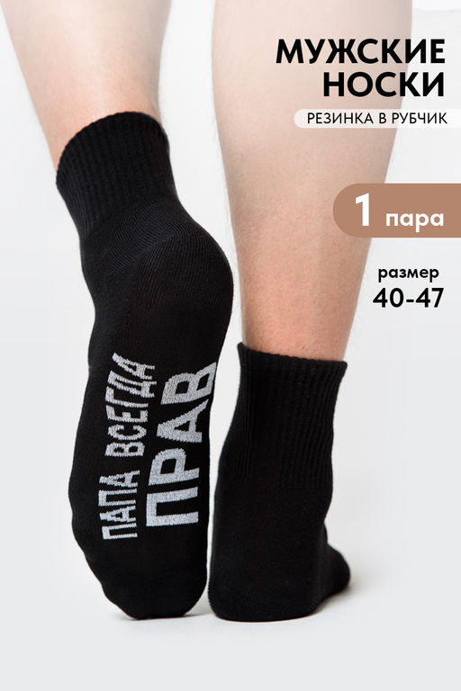 Мужские носки комплект 1 пара. Широкая резинка по всей верхней части носка. Надпись на стопе Папа всегда прав