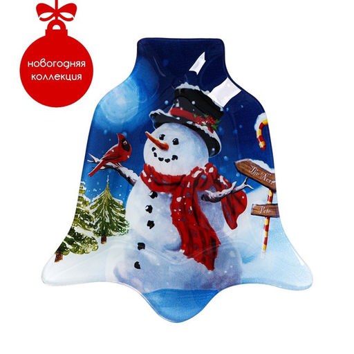 • Блюдо новогоднее сервировочное Доляна «Колокольчик. Снеговик и птичка», 18×17 см, стекло