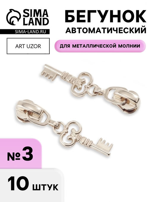 • Цена за 2 шт. Бегунок для металлической молнии, №3, «Ключ», 10 шт., цвет никель