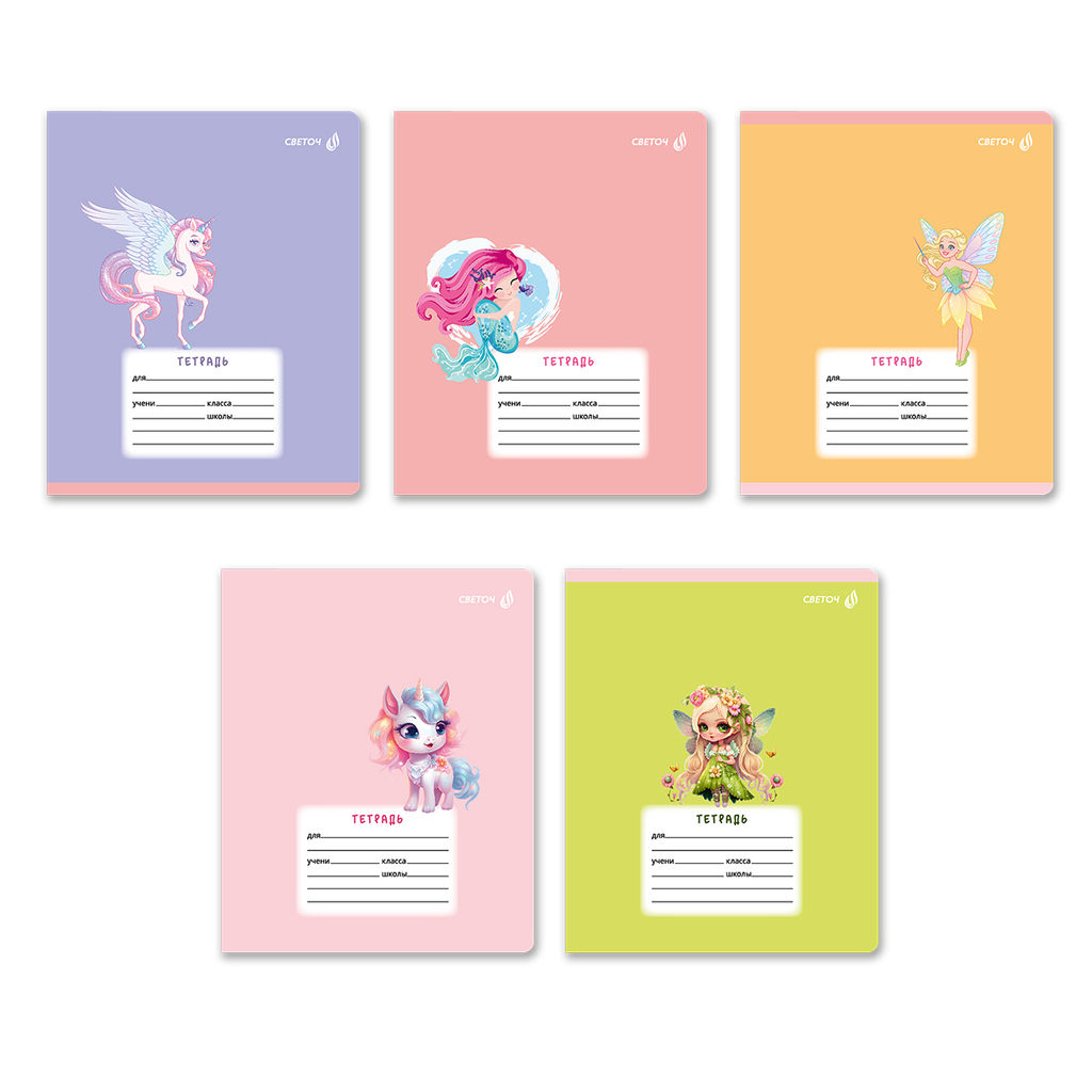 Тетрадь А5 формата, 12 листов идеально подойдет для школьников любого года обучения, используется для письма шариковыми, гелевыми и капиллярными ручками. Внутренний блок изготовлен из качественной офсетной бумаги плотностью 65 г/кв. м, 100% белизны. Обложка из мелованного картона плотностью 190 г/кв. м. Линовка - клетка, красные поля. Вид скрепления - скоба. Тетради упакованы в термоусадочную пленку по 25 штук (5 дизайнов по 5 штук). В коробе находится 4 упаковки, 100 шт. Внимание! В оптовой упаковке возможен повтор дизайна. Сертификат или декларация соответствия -- Характеристики -- Мин. кол-во для заказа: 25 Кратность: 25 Артикул: Т74 Белизна внутр. блока: 100 Вес единицы продажи (кг): 0.998 Вес отгрузочной упаковки, г: 998 Вид линовки: клетка Вид отделки: без отделки Вид скрепления: на скобе Вид тетради: школьная Габариты отгрузочной упаковки, см: 21.1*17.7*5 Количество в транспортной упаковке: 4 Количество листов: 12 Количество, шт: 25 Марка: "Светоч" Материал обложки: мелованный картон Наличие полей: Да Объем единицы продажи, л: 1.87 Однотонный цвет обложки: Нет Плотность внутреннего блока, г/кв.м: 65 Рекомендуемый возраст: от 6 лет Справочная информация: нет Страна происхождения: Россия Тип обложки: мягкая Тип товара: Тетрадь Тип упаковки: без упаковки Тип упаковки опт.ед.: в термоусадочной пленке Формат: A5 Цвет бумаги (блока): белый Артикул наименования: 01394 Праздник: 1 сентября - День знаний Тема рисунка: Волшебство, Девочки, Персонажи, Принцессы, Русалка, Сказка