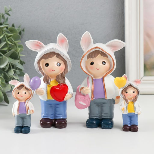 Набор фигурок полистоун Малыши в толстовках с заячьими ушками, 4 шт., 3?2?7.5 6?3?13 см