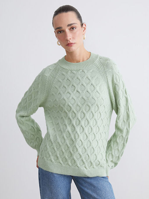 • Bisiklet Yaka Kendinden Desenli Kad?n Triko Kazak
