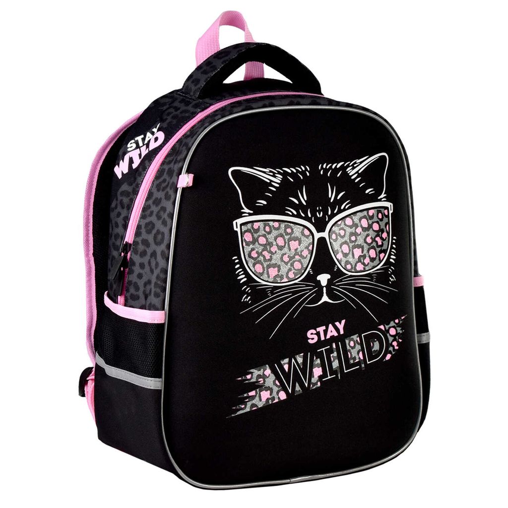 Ранец школьный Феникс+ арт.62978/ 10 СТИЛЬНАЯ КИСА (27,5x37,5x14,5 см, полиэстер, ЭВА панель, глиттер, сублимация, шелкография, 1 отделение (-я), молния, тип спинки: формоустойчивая спинка из сетчатой ткани и поролона, тип дна: с пластиковыми ножками, ПЭТ-пакет)