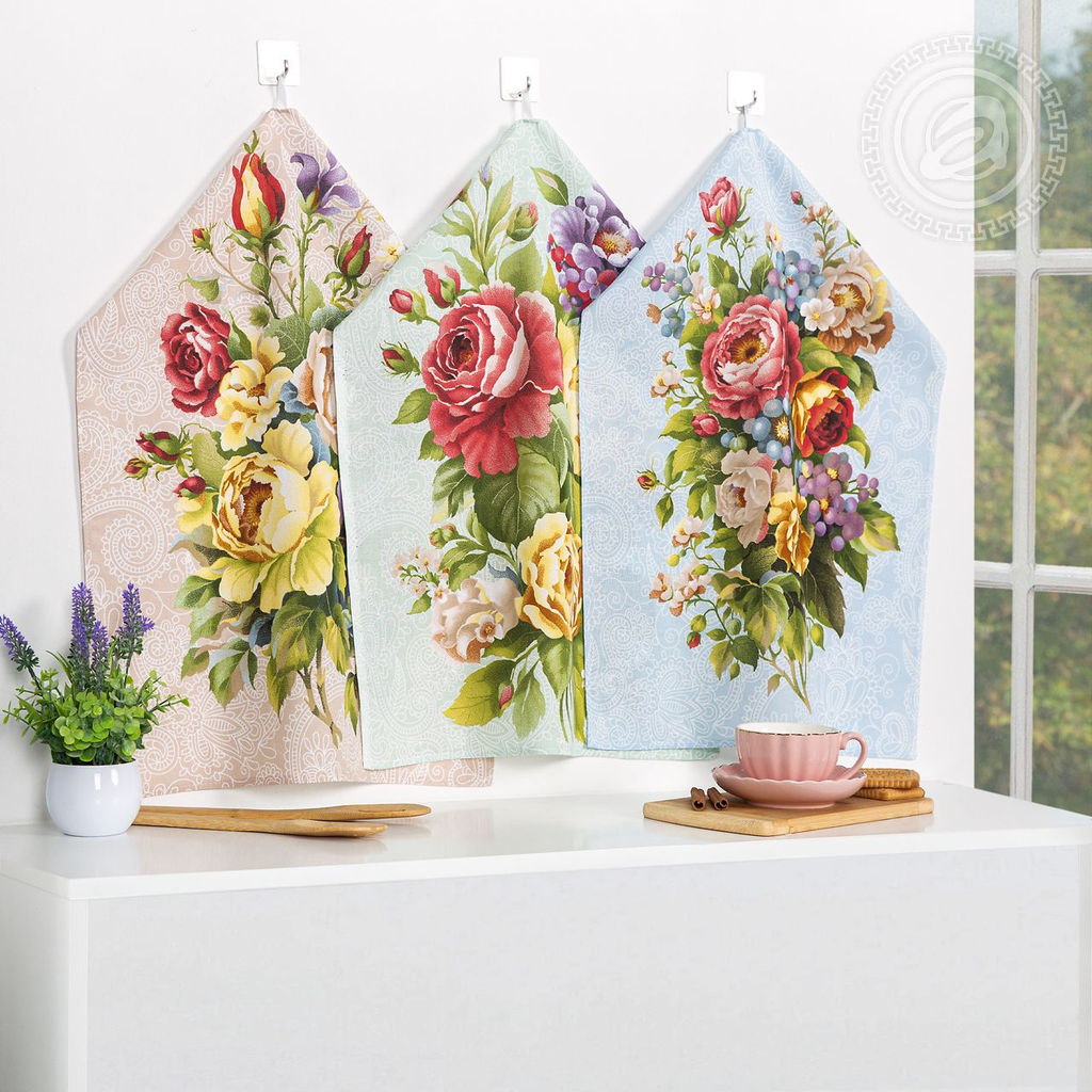 Набор полотенец из рогожки "Пионы" 45*60/3 шт. - 45*60 Полотенца из рогожки
