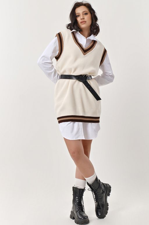 • Платье-жилет вязаное свободного силуэта с хлопком молочное