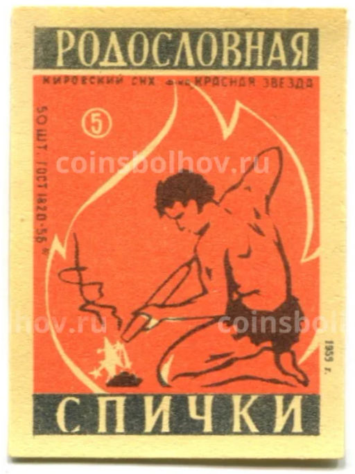 Этикетка спичечная Родословная спички № 5 фабрика Красная звезда