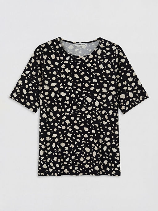 • Bisiklet Yaka Desenli Kad?n Ti??rt