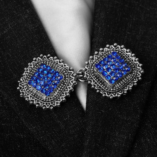• Зажим для кардигана «Квадраты», синий в чернёном серебре