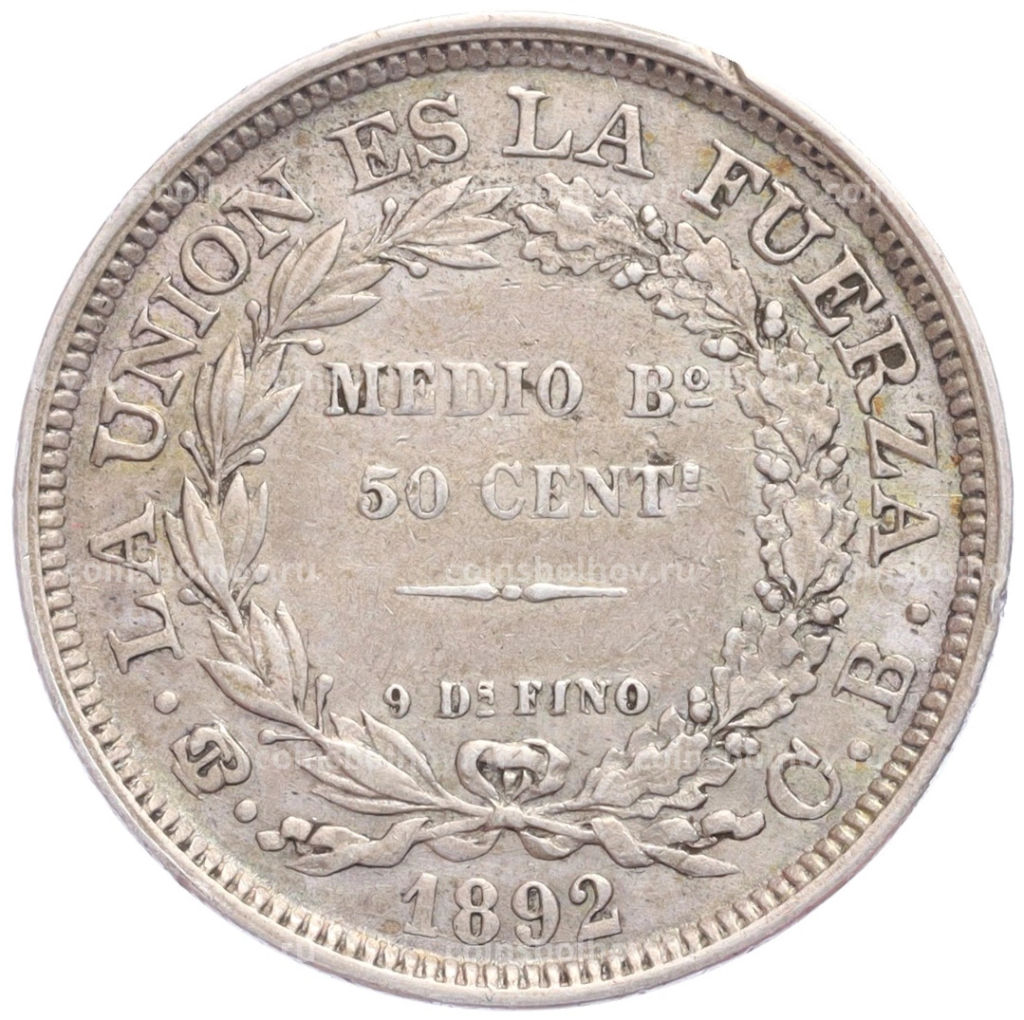 • Монета 50 сентаво 1892 года Боливия