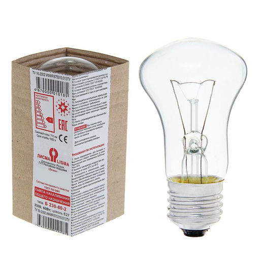 Цена за 6 шт. Лампа накаливания «Лисма», Б, Е27, 60 Вт, 230 В