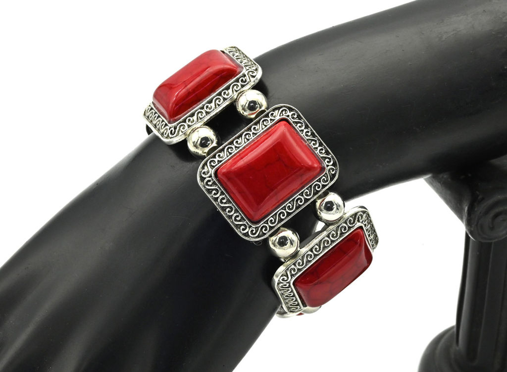 • Браслет металлический "Ретро" с кораллом (имитация), прямоугольники, 17см