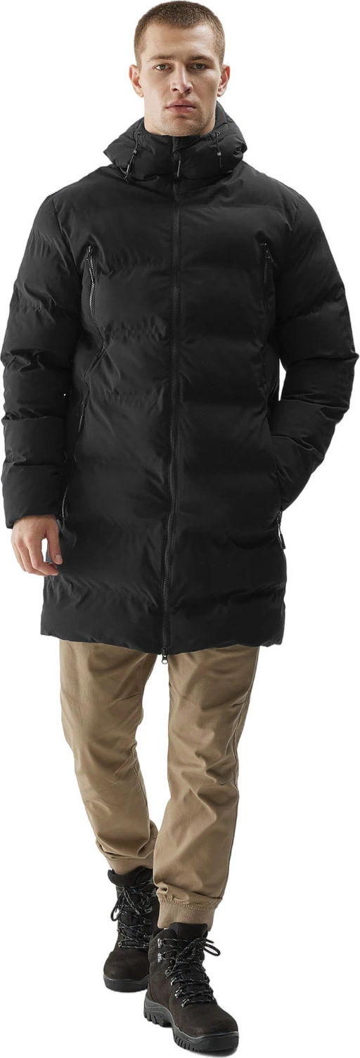 Мужское пуховое пальто с синтетическим наполнителем . Идеально подходит для зимних дней. Синтетический пуховый наполнитель и удлиненный крой выше колена обеспечат комфорт в холодные дни.