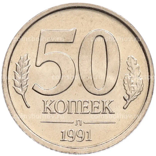 • Монета 50 копеек 1991 года Л (ГКЧП)