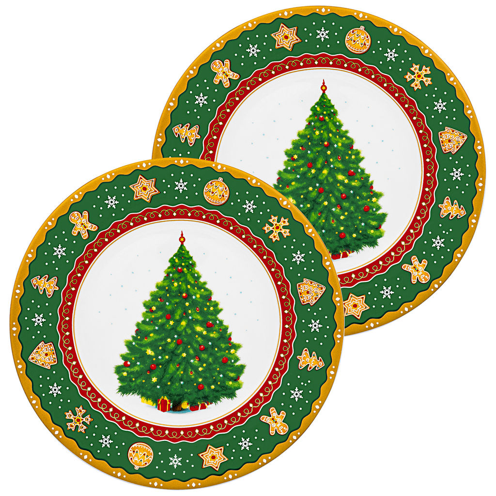 Набор тарелок десертных 2 пр. 19*19*2 см "Новогодняя елка" зеленый узор NEW BONE CHINA