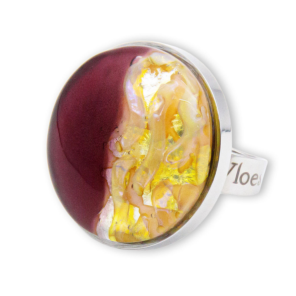 Кольцо изготовлено из муранского стекла и гипоаллергенной ювелирной стали, что очень важно для людей с чувствительной кожей. Металл не темнеет и не подвергается воздействиям окружающей среды, надолго обеспечивая красивый внешний вид изделия. Диаметр стеклянного элемента - 2,5 см. Кольцо безразмерное, регулируется с 16 до 19 размера. Вес - 12 гр.