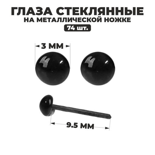 • Глаза стеклянные на металлической ножке, набор 74 шт, d= 0,3 см, цвет чёрный