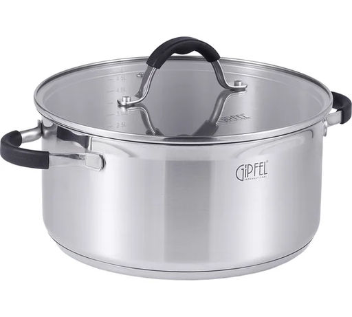 • 1735 GIPFEL Кастрюля METROPOLE 5л/24x11,5см, нержавеющая сталь 18/10, стеклянная крышка