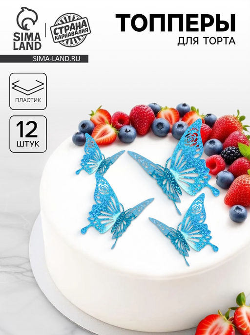 • Цена за 4 шт. Топпер для торта «Бабочки», набор 12 шт., голография, голубой