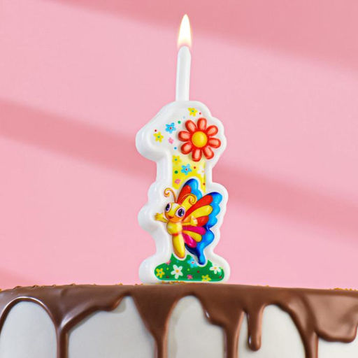 • Свеча для торта «С Бабочкой», 10.2 см, разноцветная цифра 1
