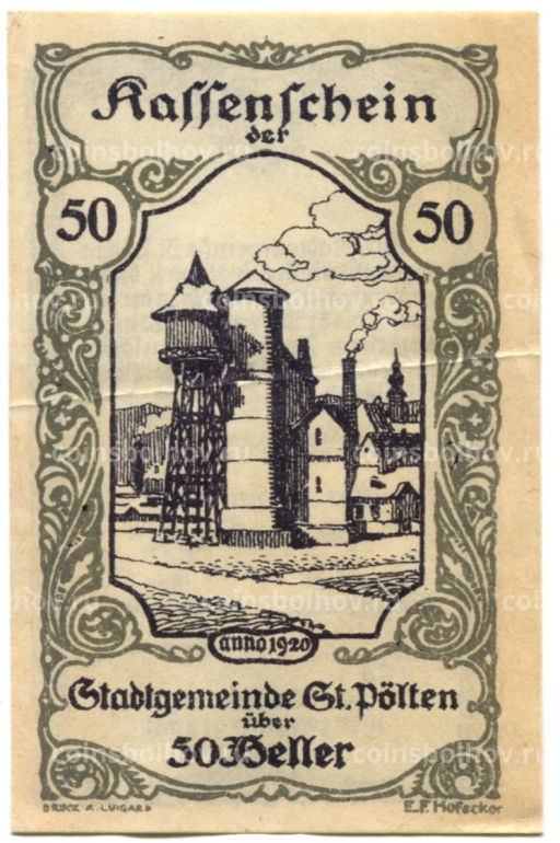 Банкнота 50 геллеров 1920 года Австрия Сен-Пёлтен (нотгельд)