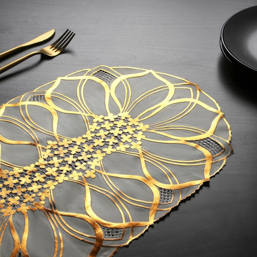 Набор салфеток ажурных Доляна «Веер», 46×30 см, 4 шт., ПВХ, золотой