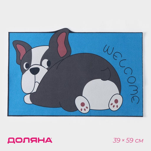 • Коврик влаговпитывающий придверный «Доляна. Бульдог», без окантовки, 38×57 см, синий