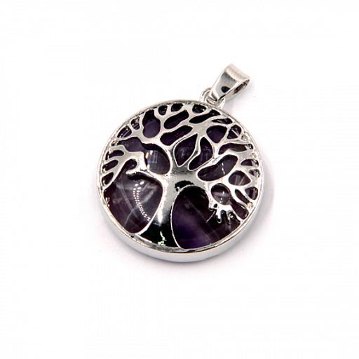 Подвеска талисман круглая Дерево Жизни с натуральным аметистом. Оправа - медицинская сталь.