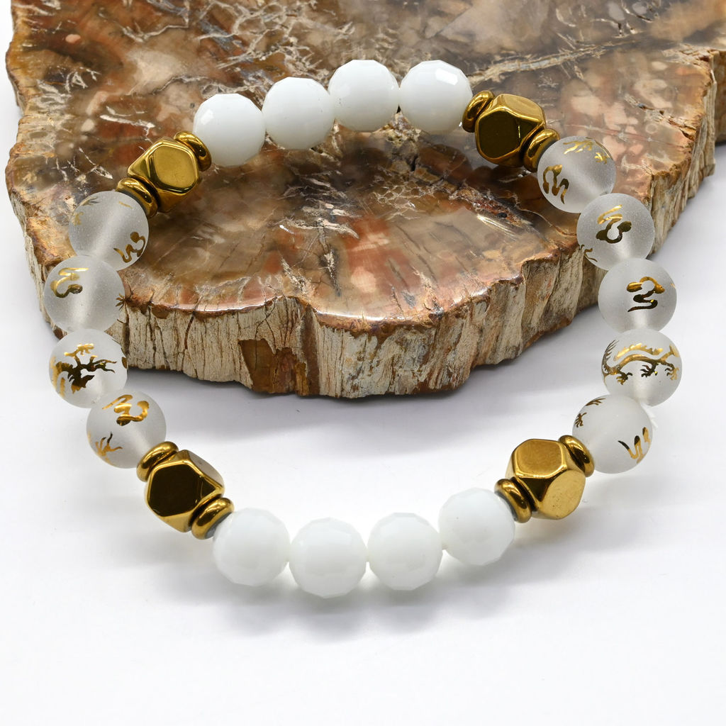 Браслет из шариков диаметром 10мм с бусиной Дзи дракон.