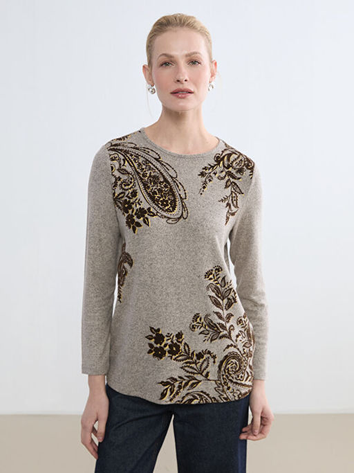 • Bisiklet Yaka Desenli Kad?n Ti??rt